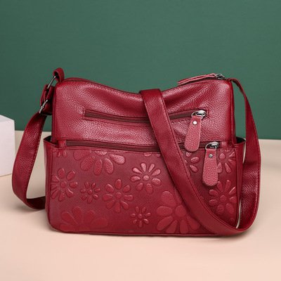 กระเป๋าสะพายไหล่หนังนุ่ม ลายดอก แฟชั่น